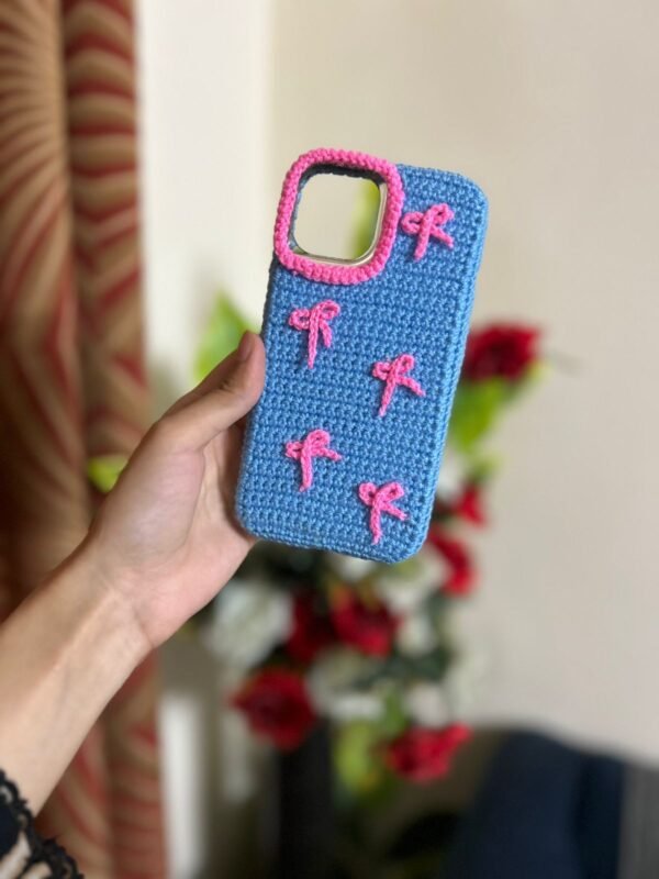 Hand-crocheted mobile phone cover made with soft, durable cotton. Snug, scratch-safe fit with optional flap/loop closure. Custom-sized for your phone model and color of choice.